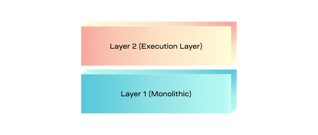 Essentially, the layer 1 is a monolithic chain that receives additional scale from layer 2. In most cases, the capacity of layer 2 is also dependent on layer 1s capacity. As a result, this implementation of a layer 1 & layer 2 stack is suboptimal for scalability.